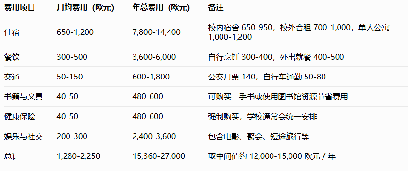 都大学硕士登科采用硬性目标+软性评估相连系的模式,2026年申请政策正在学历认定、言语成就等方面有明白调整,申请者需精准把握细节。学历资历门槛:仅接管教育部承认的全日制本科结业生申请,自考、教育、收集教育、函授等非全日制学历均被明白。这是申请的根本前提,非全日制学历申请者无需华侈时间预备。海本/境外院校:均分要求因院校排名而异,凡是需达到二等一荣誉学位程度,具体需连系院校布景征询。统招专升本学生:需满脚3年专科+2年全日制本科学制,且必需取得本科双证,申请采用casebycase模式审理,需沉点提交本科阶段的课程成就取学术;Top-up学生:需取得Higher!1品级学位,且学位课程必需包含结业论文,申请时需供给论文摘要取成就证明,由学院零丁审核;新加坡/马来私校学生:需额外供给完整的初高中学历证书及成就单,言语成就不成宽免,全体申请材料要求更严酷。严酷对口型:如MScAdvancedAI、MScData&ComputationalScience等,需具备结实的数学、编程或相关理工科根本,学校会一一审核本科阶段相关焦点课程成就(如微积分、线性代数、编程言语等);无限型:如MScComputerScience(Conversion),专为非计较机布景学生设想,但需证明本科阶段修过1-2门数学课程(正在线课程不承认),无数学根本者无法申请;形式:不接管拼分、雅思单项沉考,中国粹生正在海外(含港澳地域)加入的言语测验不被承认,除非正在测验地有持久居留履历(如进修、工做满1年以上);高要求专业:思摩菲特商学院所有专业需雅思7。0分(单项不低于6。0)或托福100分(单项不低于20分),MScMarketingPractice等专业需提交及格言语成就才能进入审理流程。小我陈述(PS):800-1000字,需包含申请动机、学术布景、实践履历、职业规划,沉点凸起取申请专业的婚配度,连系都大学的课程特色或传授研究标的目的展开(如申请AI专业可提及Prof。BarryO’Sullivan的研究);保举信:2封学术保举信,需由本科讲课教师或导师撰写,采用网推形式,内容需具体表现申请者的学术能力取潜力。科研履历:理工科申请者若有本科导师课题参取履历、学术论文颁发、学术竞赛获(如数学建模竞赛),会显著提拔合作力;练习实践:商科申请者若有出名企业相关练习履历(如金融行业的投行练习、营销行业的品牌练习),需正在材猜中凸起所获技术取专业的联系关系性;赴都大学攻读硕士的费用次要包罗膏火、糊口费两部门,2026年膏火略有上涨,申请者需提前做好经济规划,并积极争取学金支撑。都做为首都,糊口成本正在欧洲处于中等程度,年均糊口费约12,000-15,000欧元,具体分项测算如下: