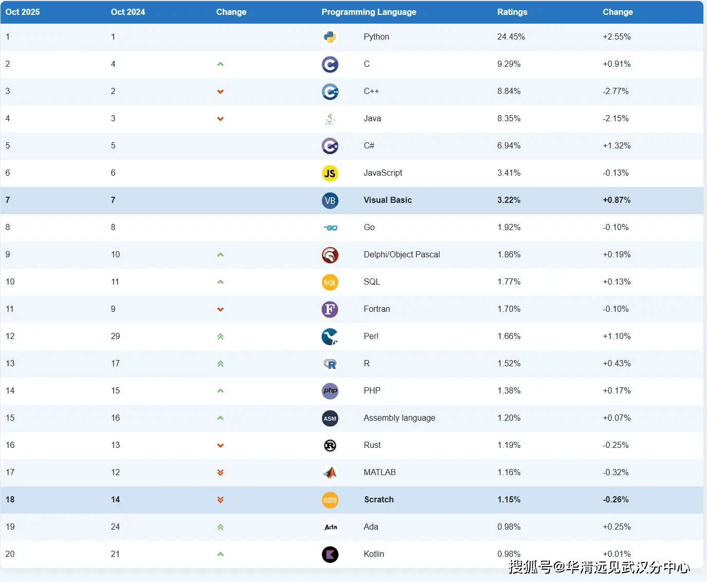 按照2025年10月最新数据,Python以24。45%的份额稳居榜首,较上月大幅上升2。55个百分点。这一数据进一步巩固了Python自2023岁尾以来的地位。